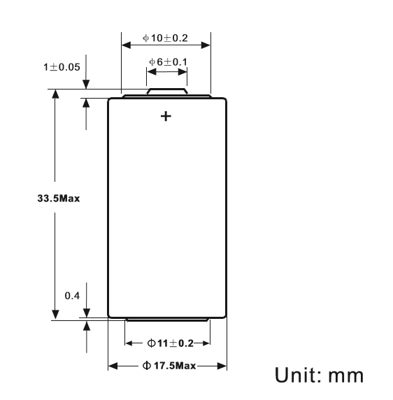 | 2/3A | ER17335 | φ17.0X33.5 | 21 | 3.6 | 2 | 2100(2mA) | 100 | 200 |